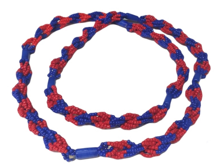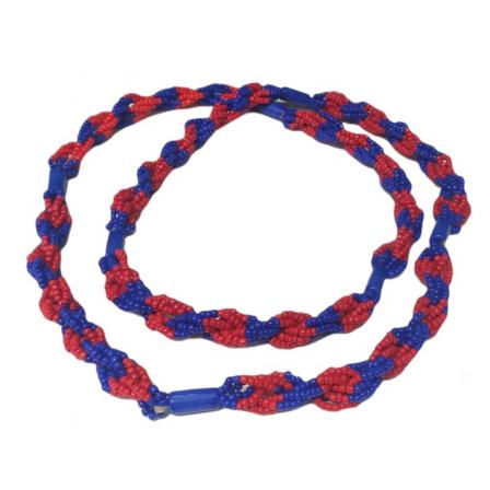 Brajá com 7 fios e 7 firmas Transpassado Azul com Vermelho (miçanga fosca)