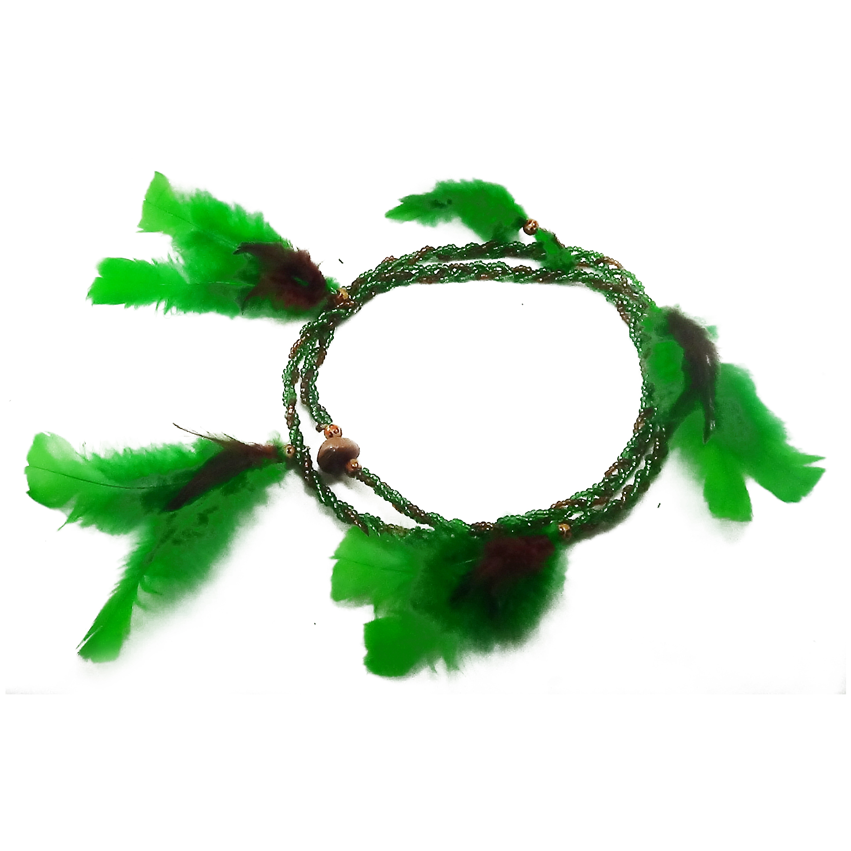 Brajá 3 Fios Trançado - Marrom e Verde Cristal C\Penas(Caboclo)