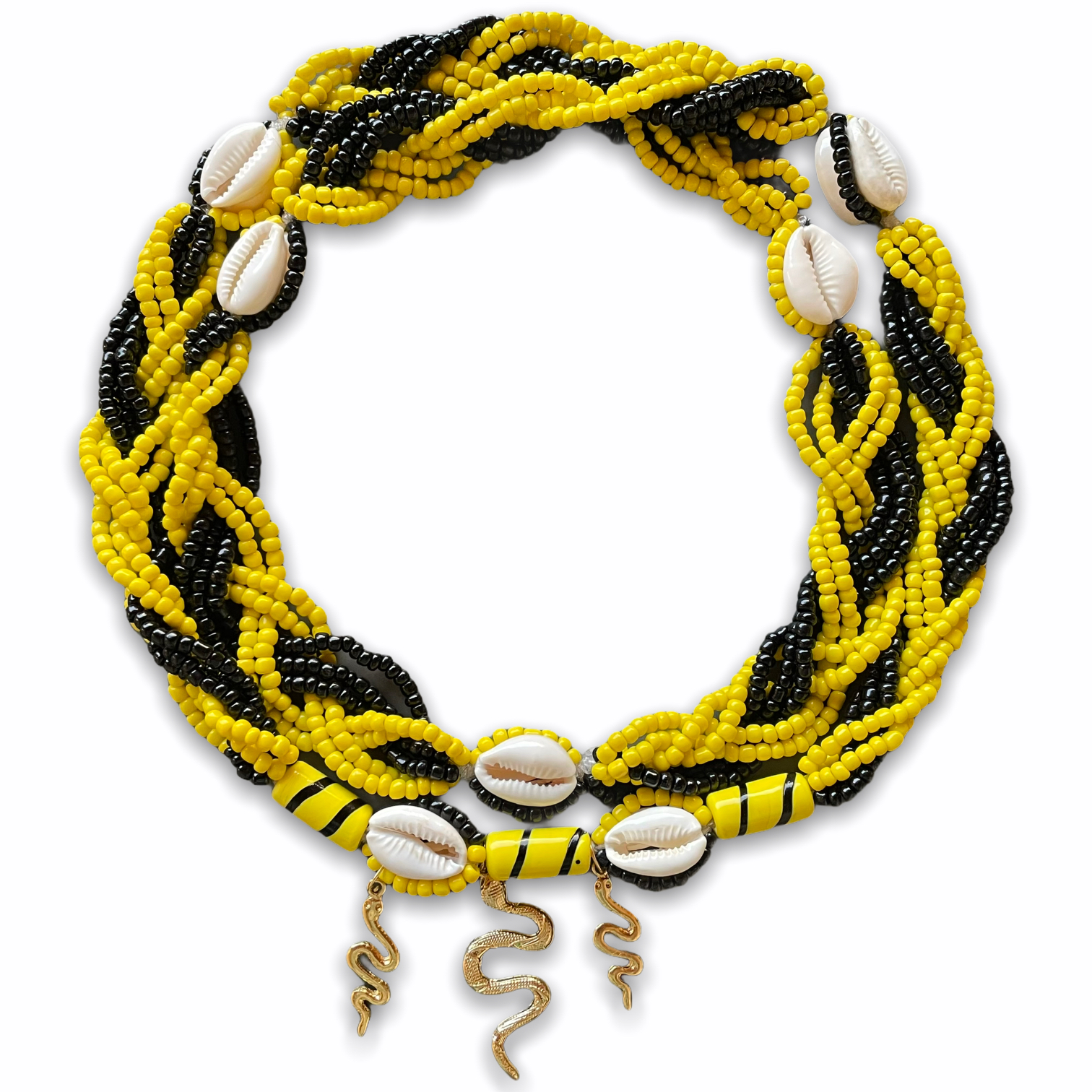 Brajá 7 Fios Transpassado - Amarelo c/ Preto Fosco C\14 Búzios (Oxumaré)