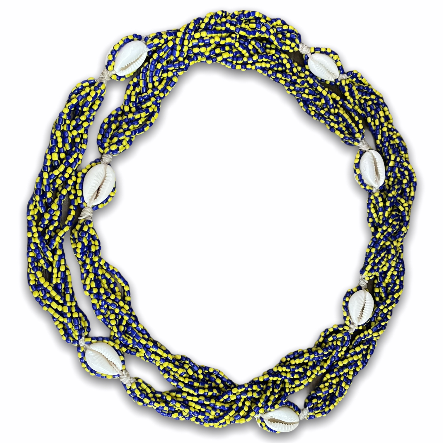 Brajá 7 Fios Transpassado - Amarelo Com Azul Royal C\14 Búzios (Logun Éde)