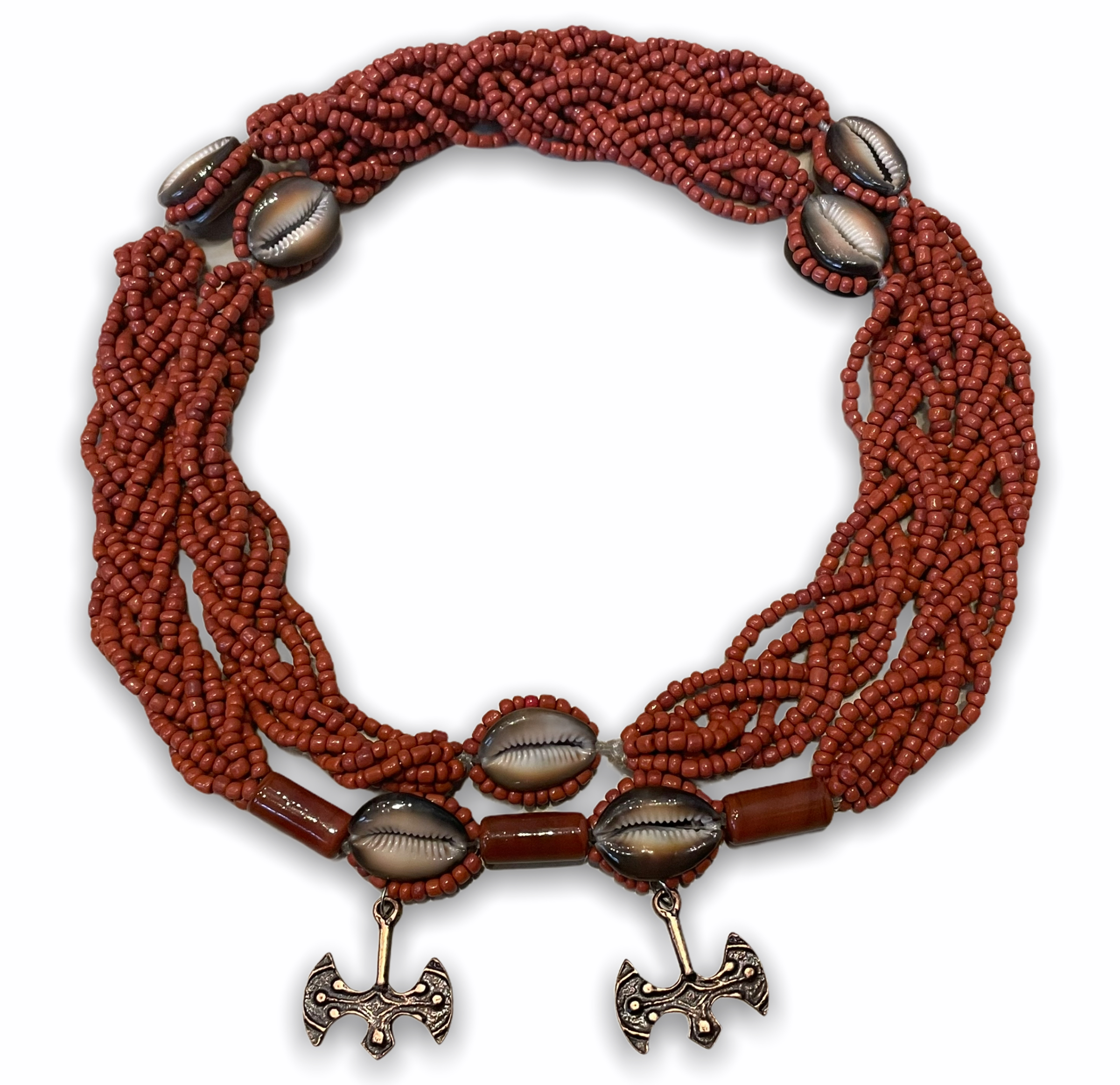 Brajá 7 Fios Transpassado - Marrom Fosco C\14 Búzios (Xango)