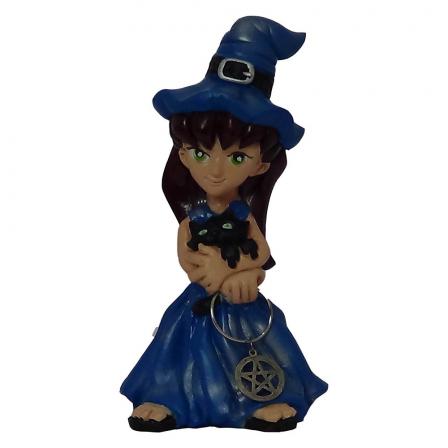 Bruxa Domenica Azul com Pentaculo em Resina 17 CM
