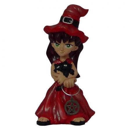 Bruxa Domenica Vermelha com Pentaculo em Resina 17 CM