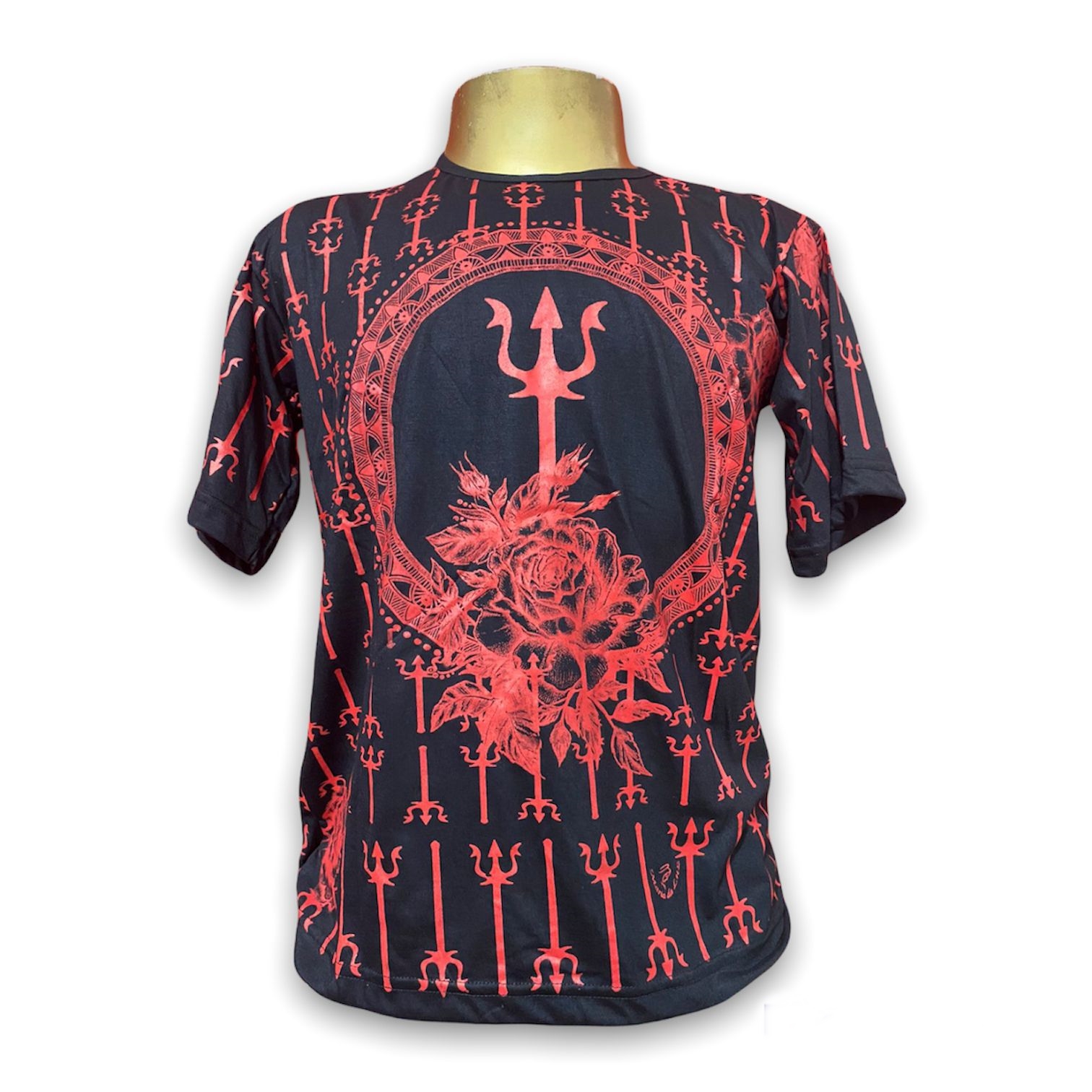 Camiseta Com Estampa Tridente De Pomba Gira (Preta)