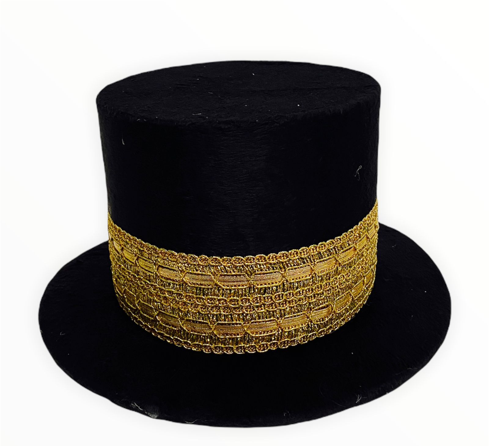 Cartola Alta Aveludada Preta Com Faixa Dourada (Mod.15)
