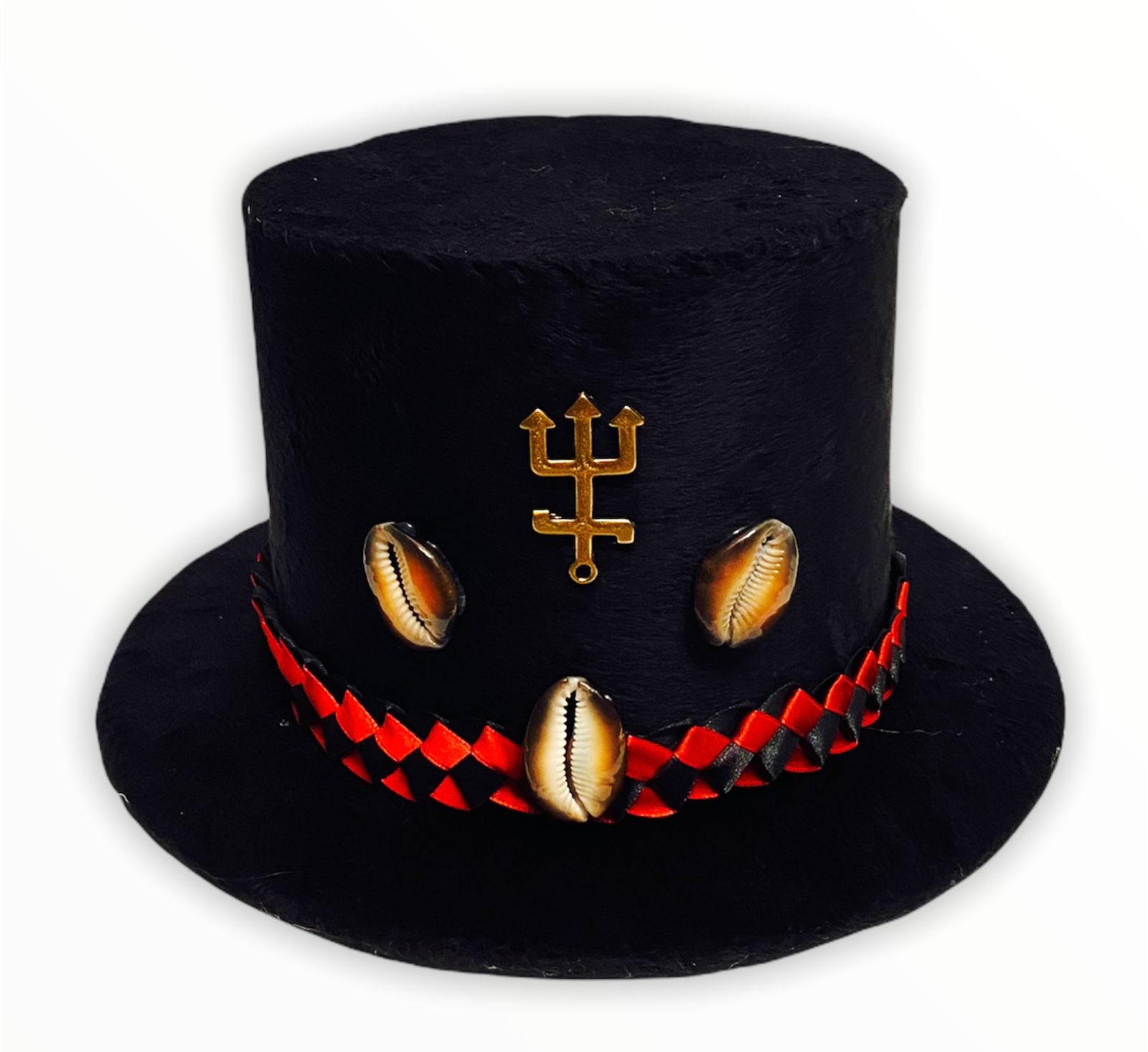 Cartola Alta Aveludada Preta Com Faixa Vermelha C/ Preto (Mod.6)