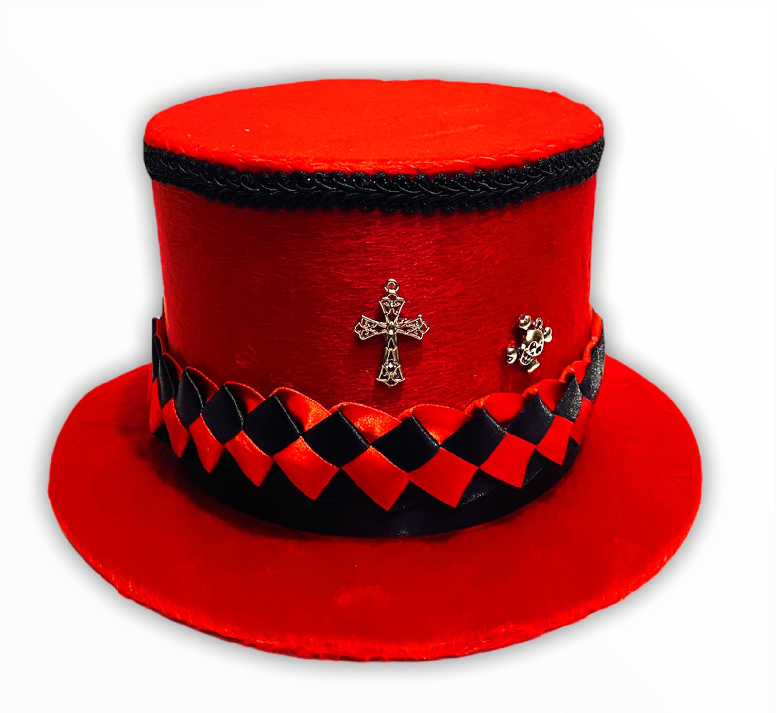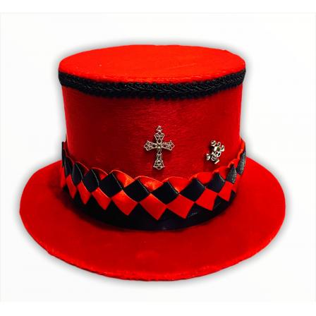 Cartola Alta Aveludada Vermelha Com Faixa Vermelha C/ Preto (Mod.16)