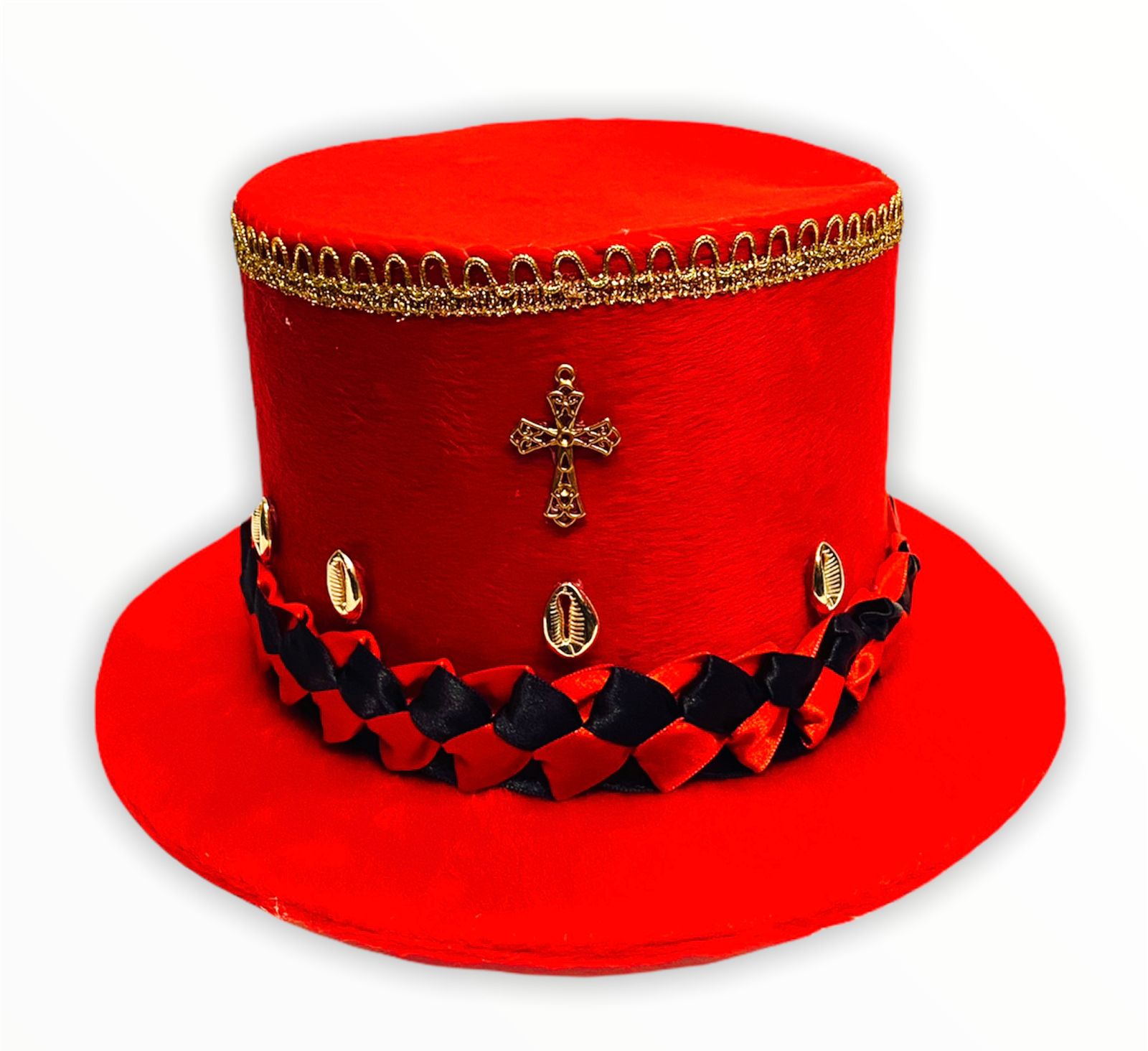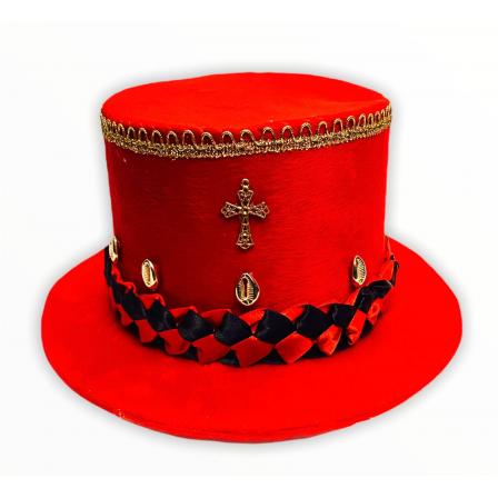 Cartola Alta Aveludada Vermelha Com Faixa Vermelha e Preta C/ Dourada (Mod.2)