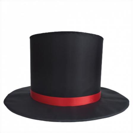 Cartola Alta Preto Com Faixa De Cetim Vermelho (Exu)