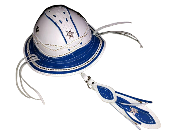 Chapéu De Couro Cangaceiro Branco Com Azul