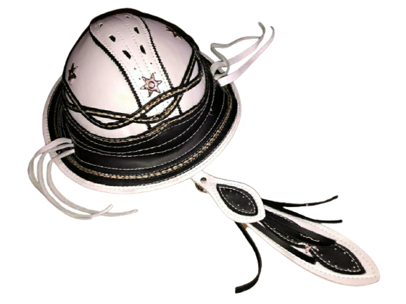 Chapéu De Couro Cangaceiro Branco Com Preto