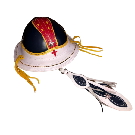 Chapéu De Couro Cangaceiro Branco/Preto E Vermelho