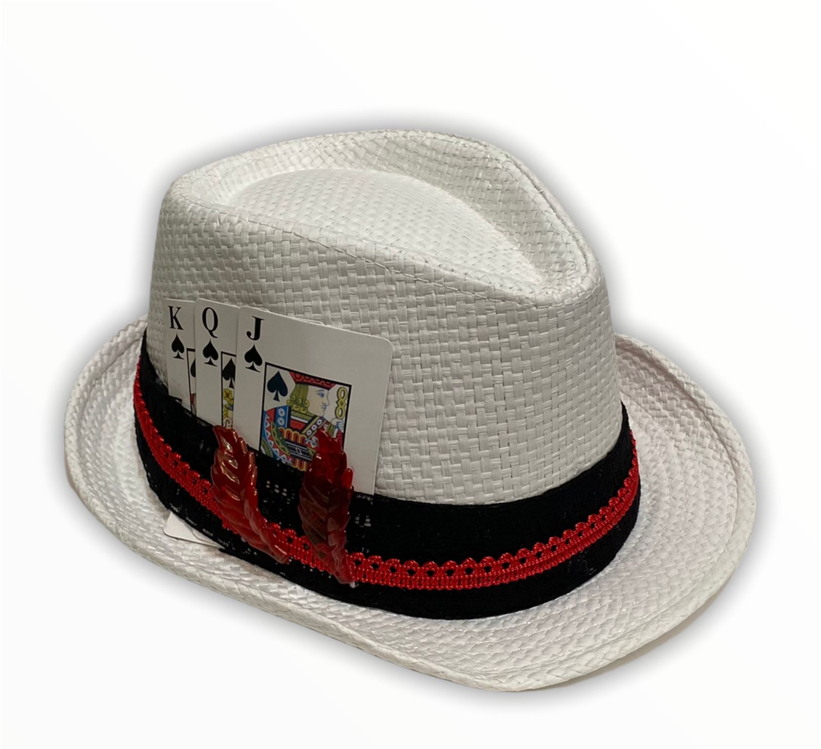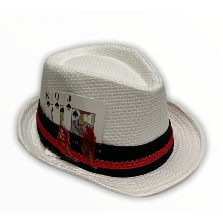 Chapéu Panamá Branco Com Faixa Preta E Vermelha C/ Baralho