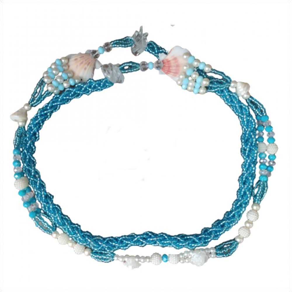 Chicote Azul Cristal Com Conchas