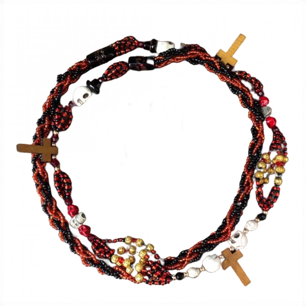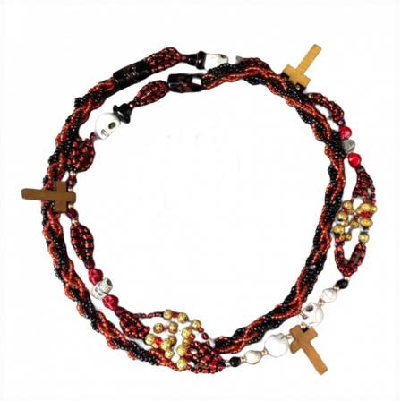 Chicote Personalizado Bicolor Vermelho Cristal e Preto Fosco com Caveira e Crucifixo