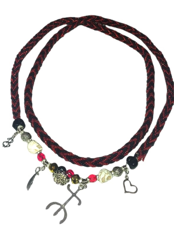 Chicote Personalizado Preto E Vermelho Cristal Com Pingentes