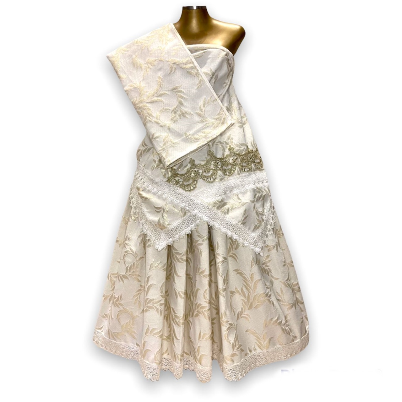 Conjunto Feminino Jacquard Com Fio Dourado (Branco Com Dourado Estampado)
