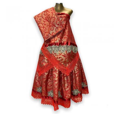 Conjunto Feminino Jacquard Com Fio Dourado (Vermelho Com Dourado Estampado)