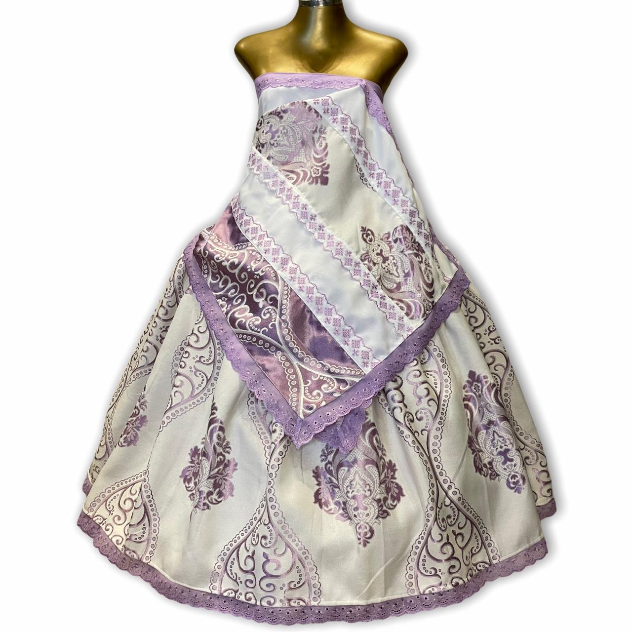 Conjunto Feminino Jacquard Dupla Face Estampado Branco e Roxo