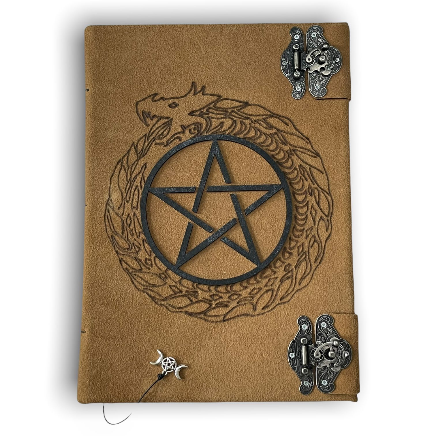 Adquira já este lindo grimório, feito em couro legítimo, suede(sintético), MDF e fechos em metal.