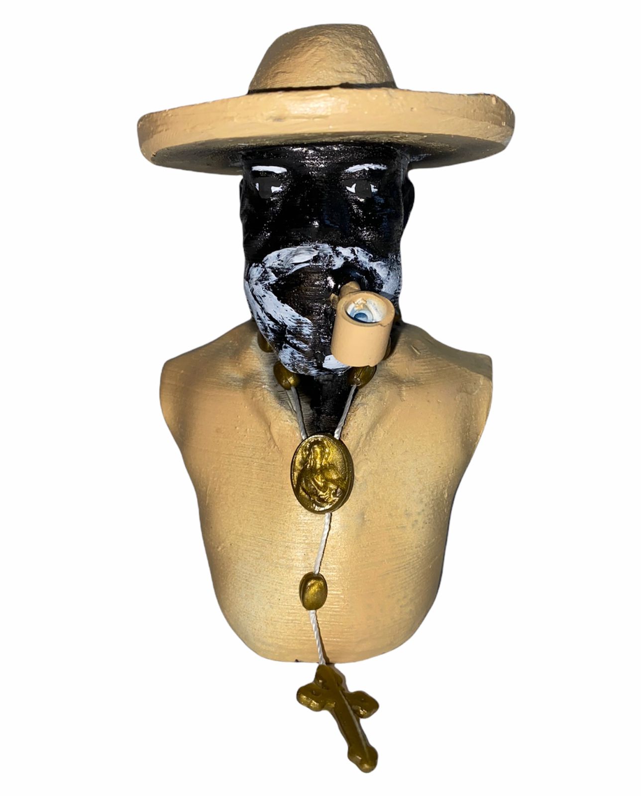 Incensário Cascata Busto Preto Velho Em Resina 13 Cm