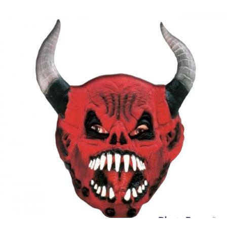 A Máscara é Inteira e cobre toda a cabeça como um capacete, ela possui orifícios