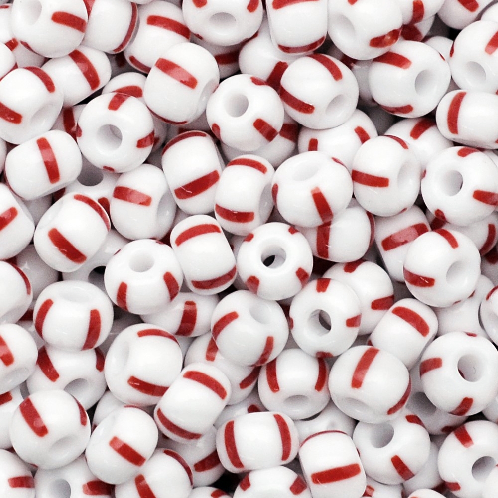 Pacote De Miçangas Rajada 50gr (Branco - Vermelho)