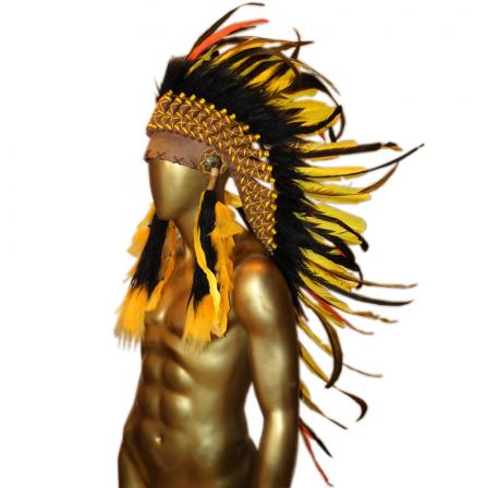 Penacho Índio Americano Grande - Amarelo, Laranja e Preto