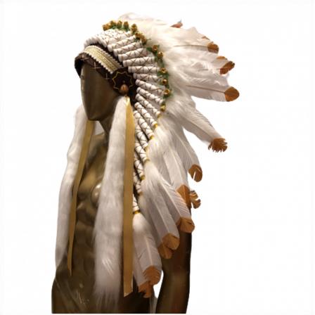 Penacho Índio Americano Grande - Bicolor Branco e Dourado