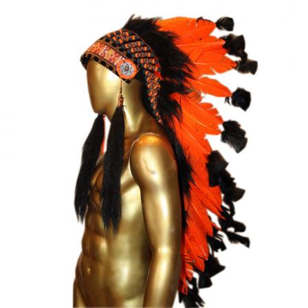 Penacho Índio Americano Grande - Laranja com Preto