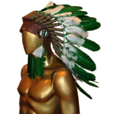 Penacho Índio Americano Médio - Verde e Branco