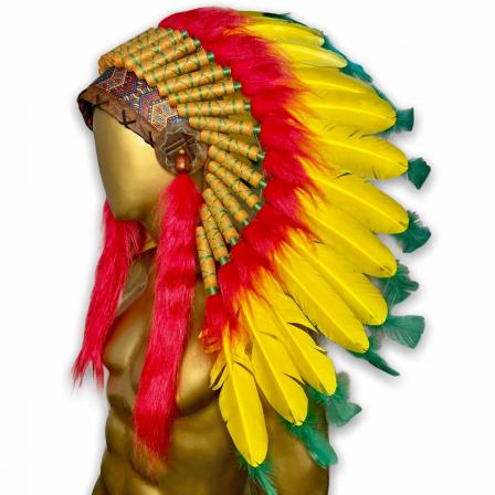 Penacho Índio Americano Pequeno - Amarelo Com Verde