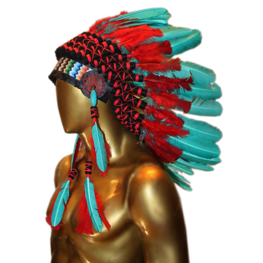 Penacho Índio Americano Pequeno - Azul Tiffany e Vermelho
