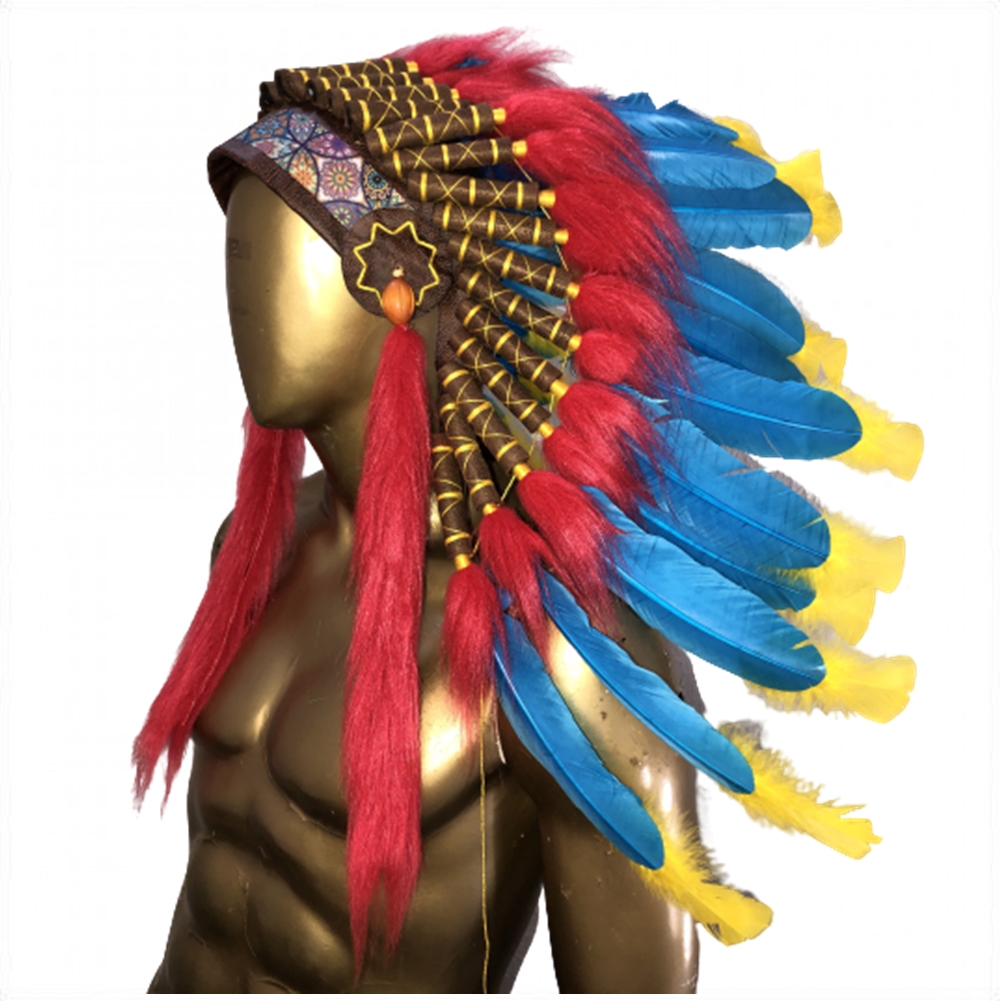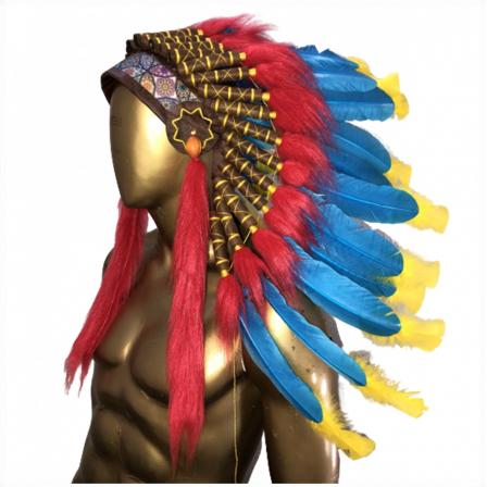 Penacho índio Americano Pequeno Bicolor Azul e Amarelo