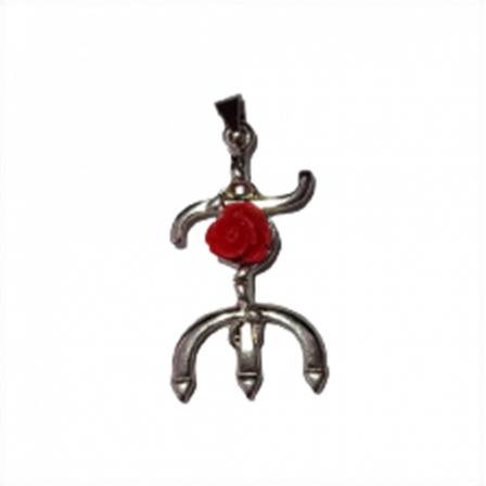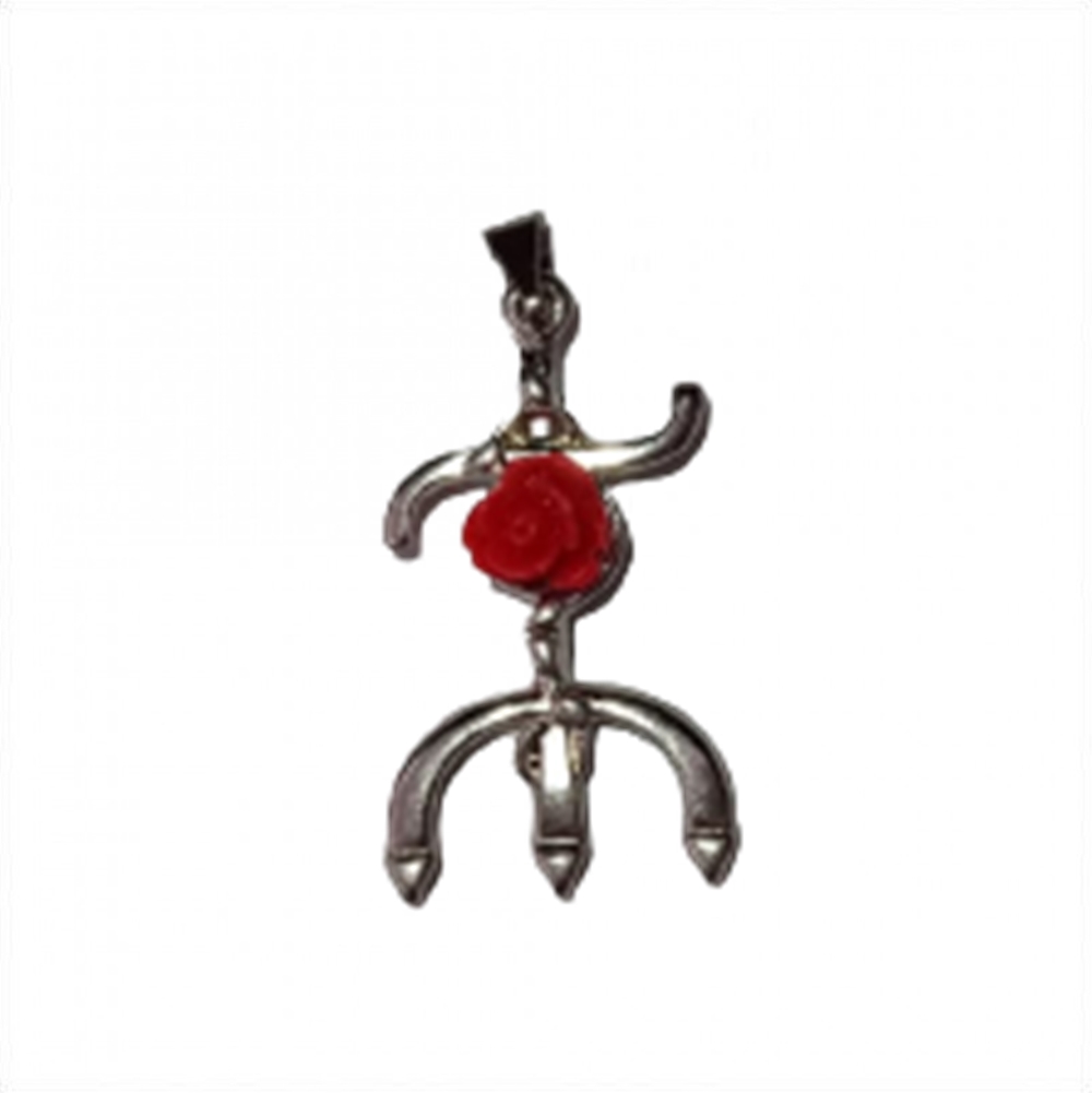 Pingente Tridente de Pombo Gira Com Flor (Prata)
