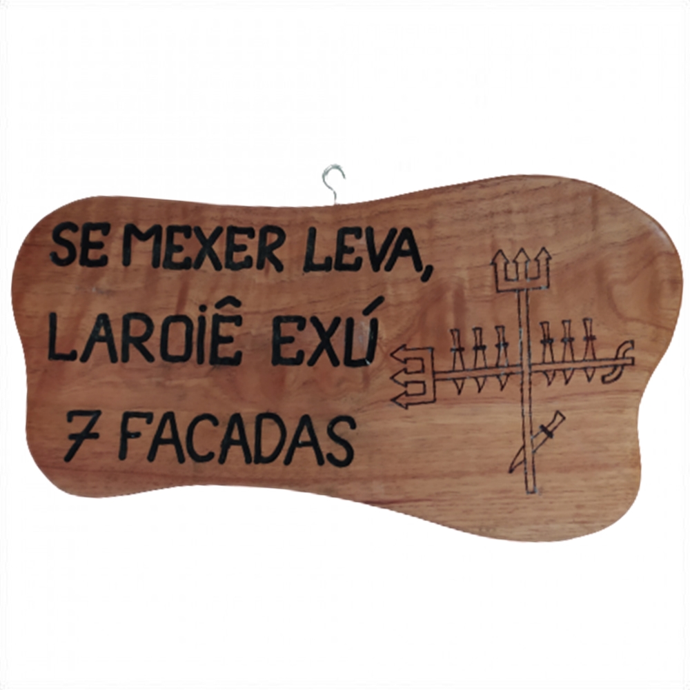 Placa De Madeira Com Frase (Exu 7 Facadas)