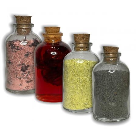 Contendo: 7 tipos de pimenta, azougue, extrato de víbora, vidro, enxofre, baratas, raspa de chifre de bode, chifre de veado, carvão, raspa de chifre de boi, fel de boi, fel de