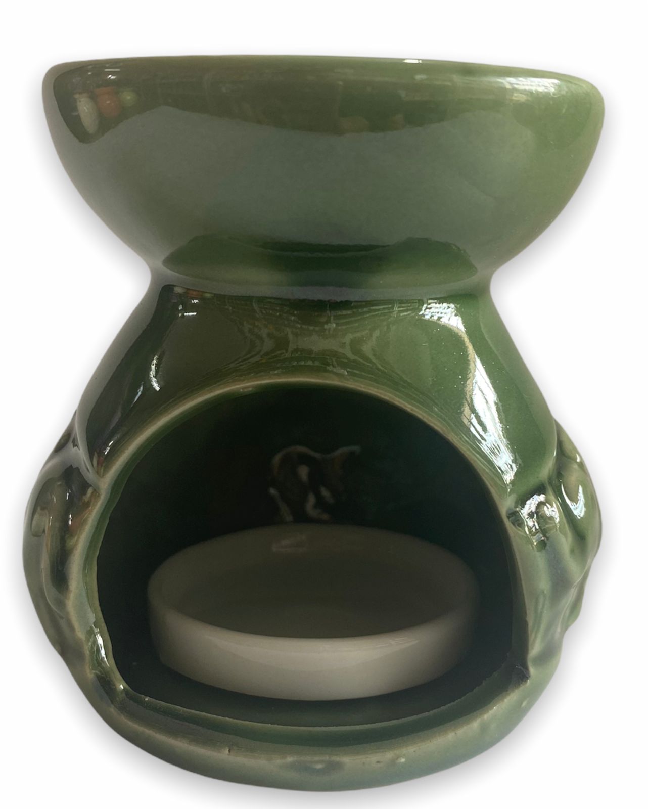 Peça em cerâmica utilizada para difusão dos Óleos Aromáticos através da evaporação da água aquecida por uma vela.