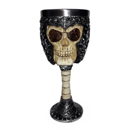 Taça Cálice - Caveira Armadura Medieval Inox e Resina 3D